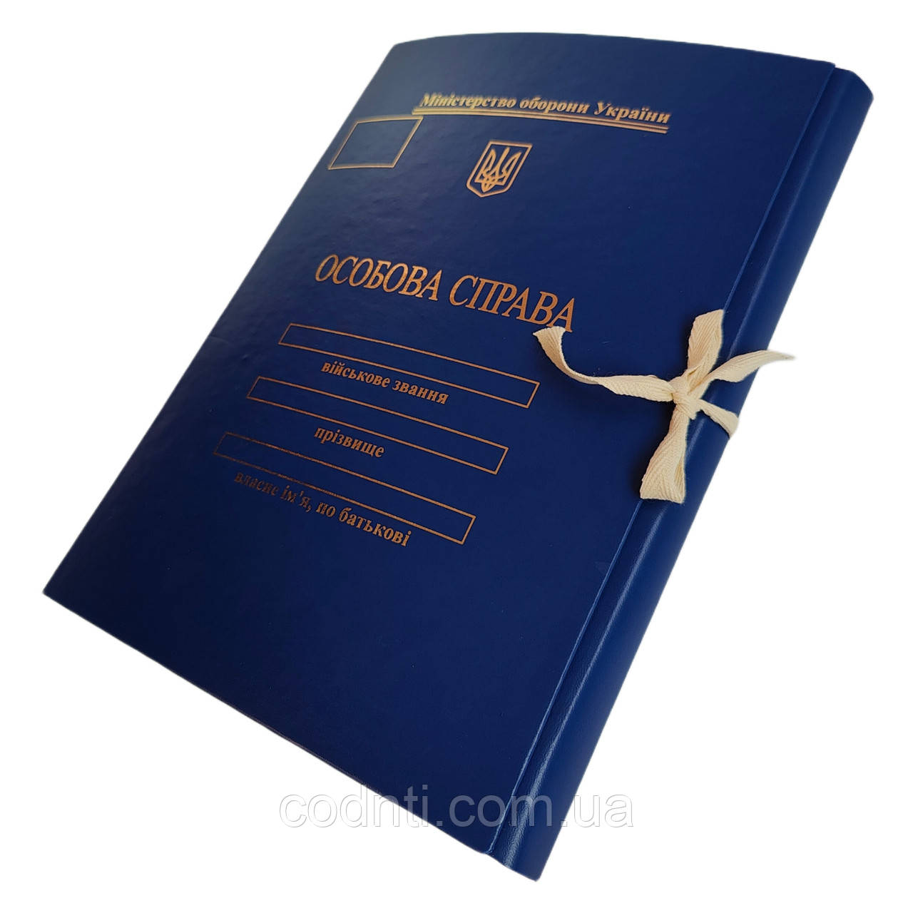 Представляємо вам папку формату А4 із зав'язками та тисненням, що повністю відповідає вимогам Міністерства оборони України. Це надійний засіб для організованого зберігання документів у особових справах військовослужбовців. Обладнана зав'язками і має корінець висотою 40 мм, ця папка виготовлена з високоякісного бумвінілу, що гарантує міцність та тривалий термін служби. Вона підкреслює серйозний підхід до зберігання та організації документації та допоможе вам у підтримці порядку та доступності інформації в особистих справах військовослужбовців.